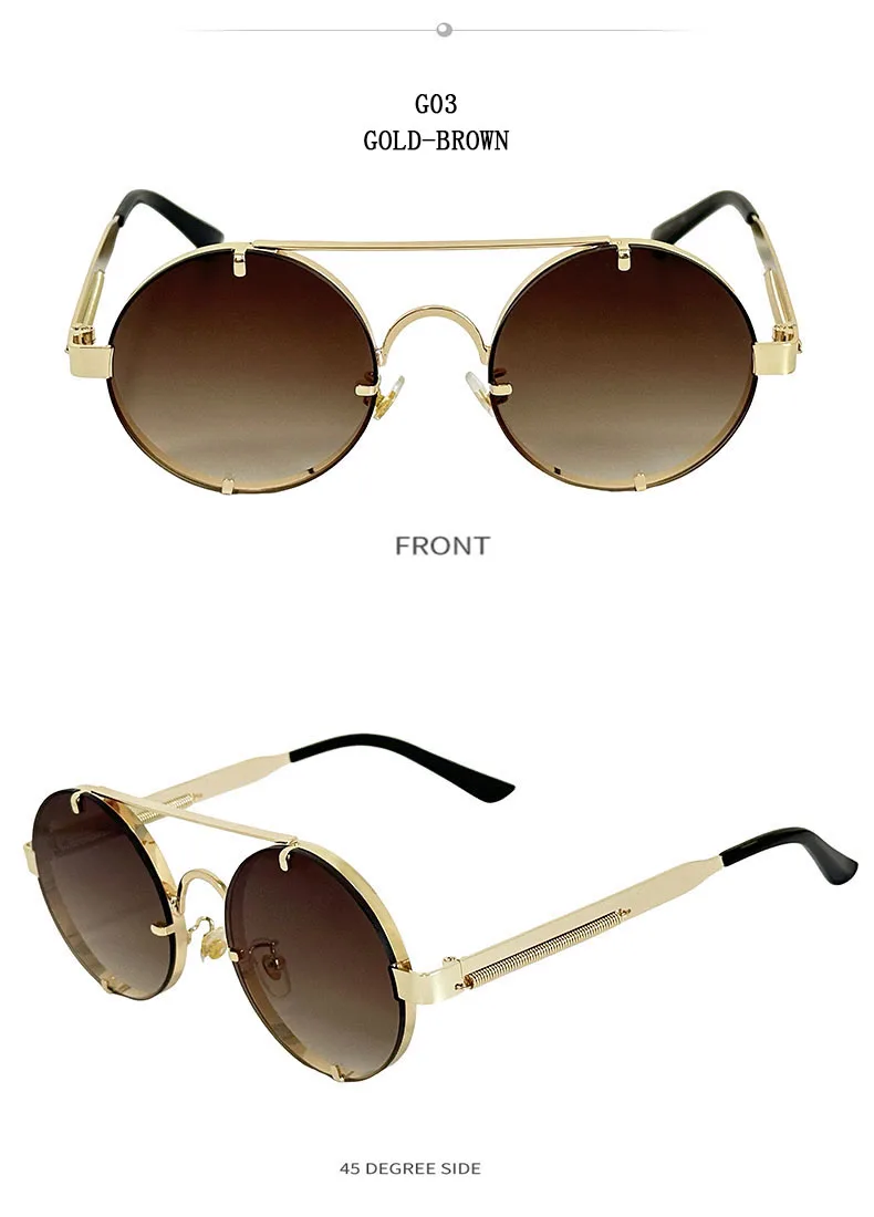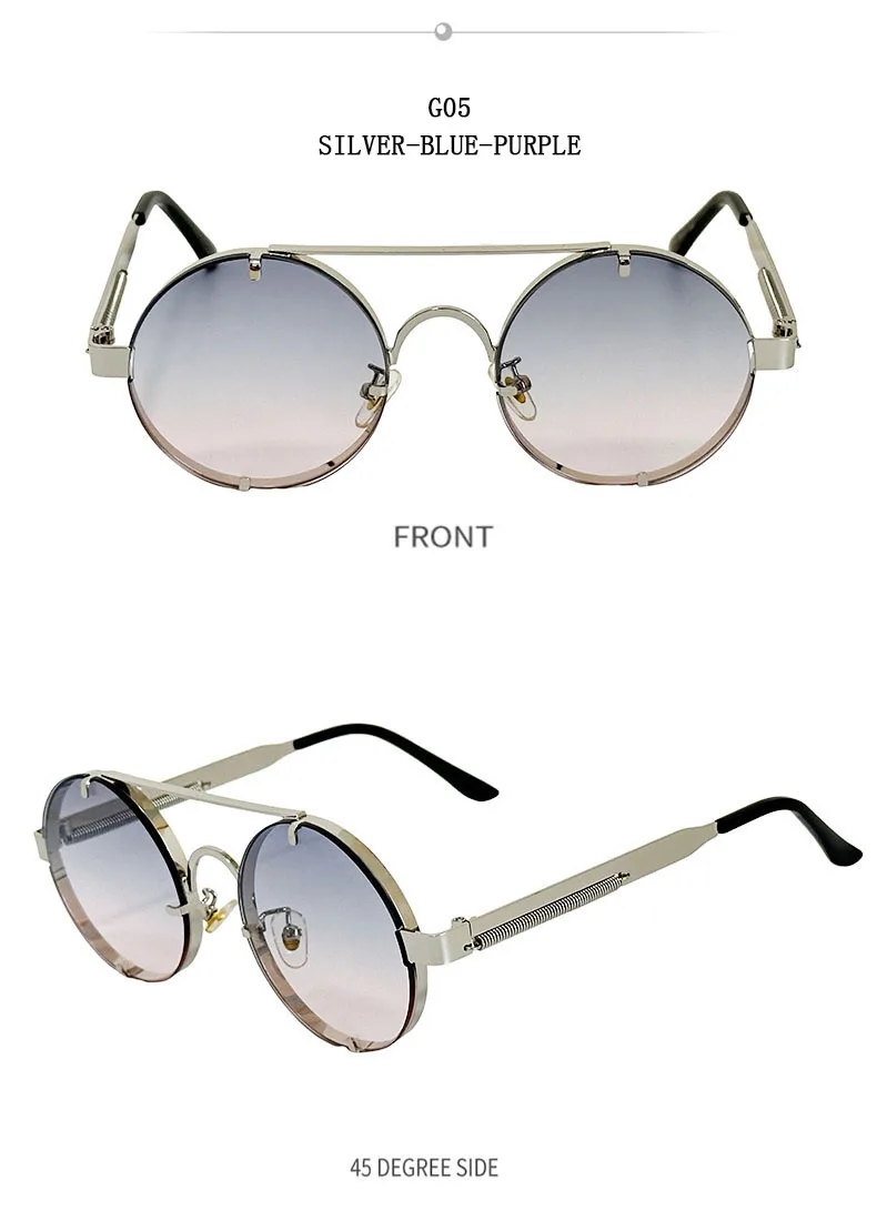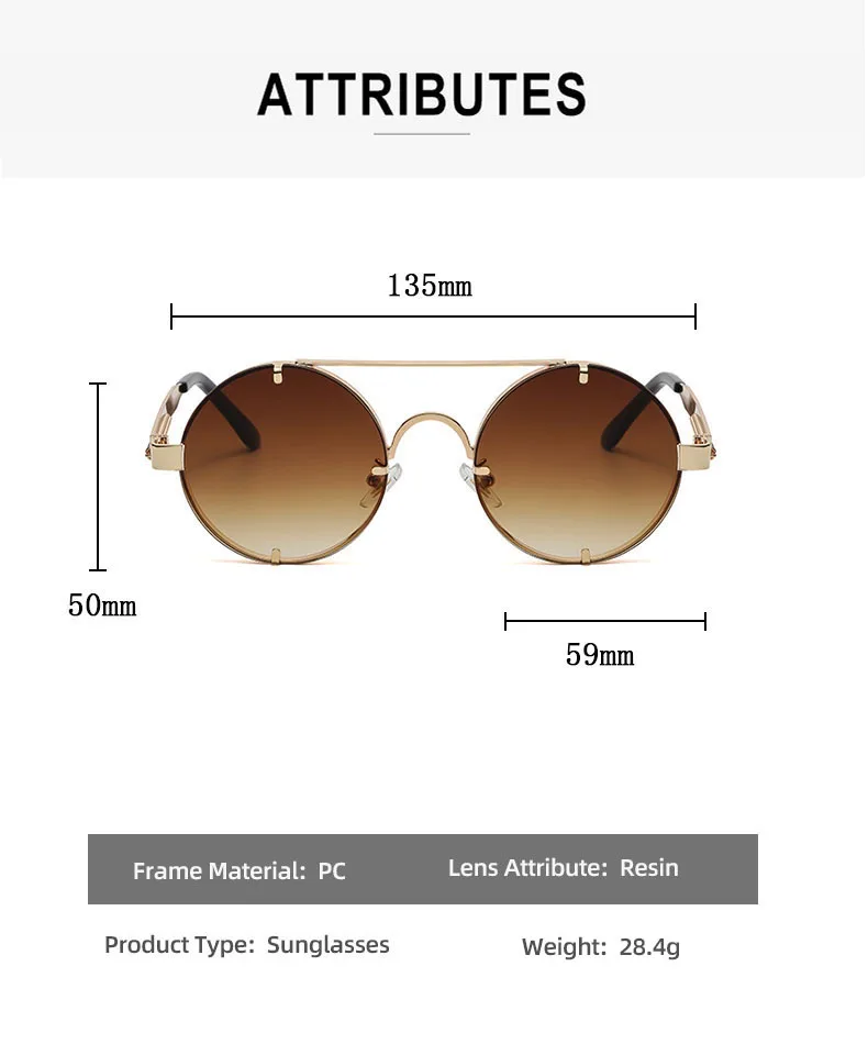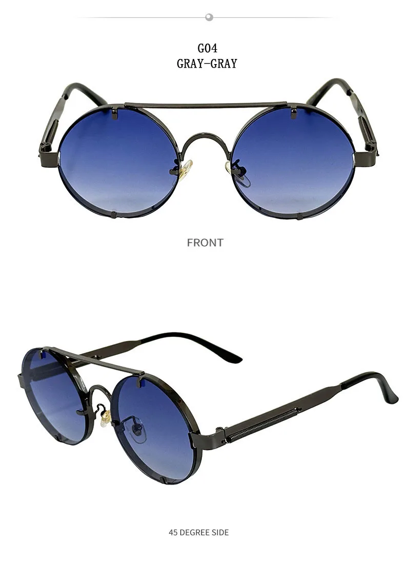 Embrace your inner punk with our Steampunk Sunglasses! These retro oval shades are sure to make a statement wherever you go. Stand out from the crowd and protect your eyes with the ultimate fashion-forward accessory. Perfect for both men and women. Grab your pair today!