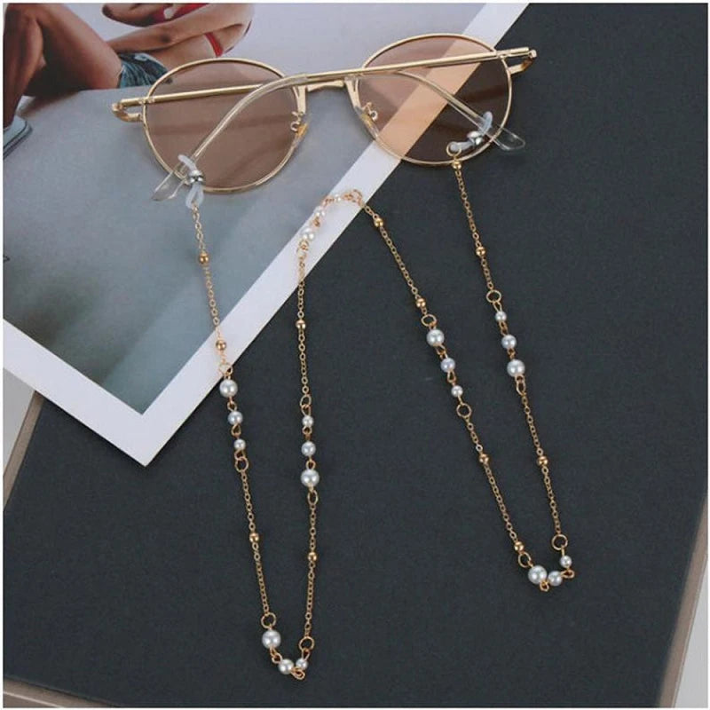 Keep your glasses in place with this stylish eyeglass chain featuring metal and imitation pearl beads. The trendy design not only keeps your glasses from falling, but also adds a touch of elegance with its pearl accents. Stay fashionable and functional with this must-have eyeglass accessory.